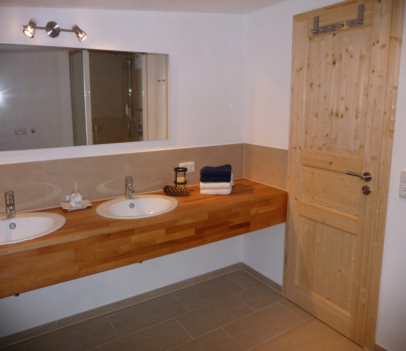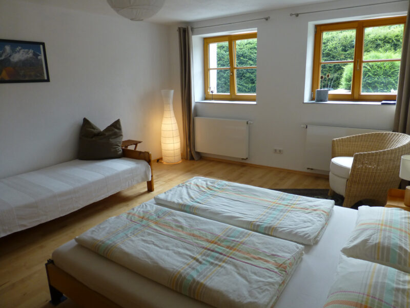 Den Mittelteil unseres großen Anwesens, in dem sich früher der Stall und Heustock befand, haben wir in mühevoller Arbeit entkernt und völlig neu aufgebaut. Noch heute staunen wir über die Meisterleistung der einheimischen Baufirma, die es ohne Veränderung an der Fassade geschafft hat, dieses moderne Element in unser Traditionshaus zu integrieren.
